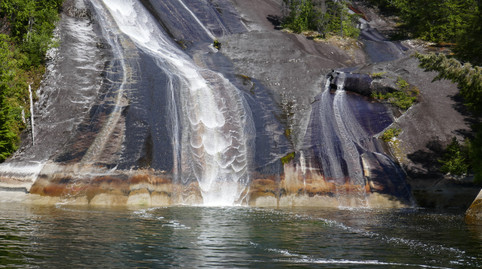 Travelling further we nestled up to Lacey Falls. The falls may not have been at their peak but, they were beautiful to see just the same. The surrounding granite faces and struggling vegetation was difficult to capture in photos.